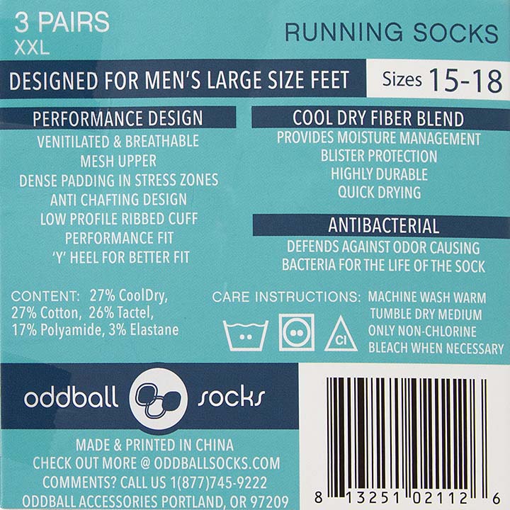 The Oddball Performance Running Sock is an ankle length sock designed specifically for the large-footed male who requires a sock that can handle the stress of athletics while providing superior comfort and fit. Slightly higher on the ankle than our Performance No-Show socks, and with a softer, more cushioned ride. The silky-soft CoolDry cotton fibers keep your foot surrounded in lavishness no matter where your feet take you. Oddball’s most comfortable sock yet!